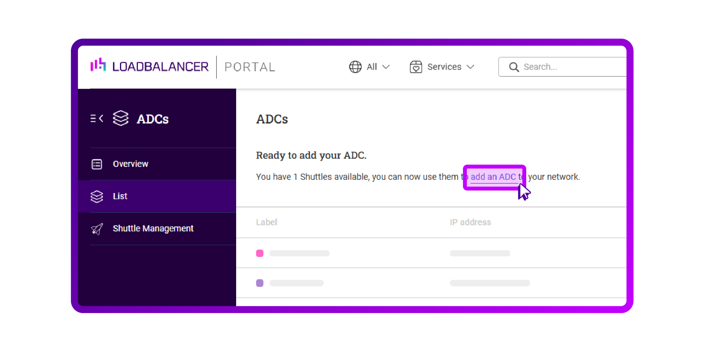 - Click on 'Add an ADC':