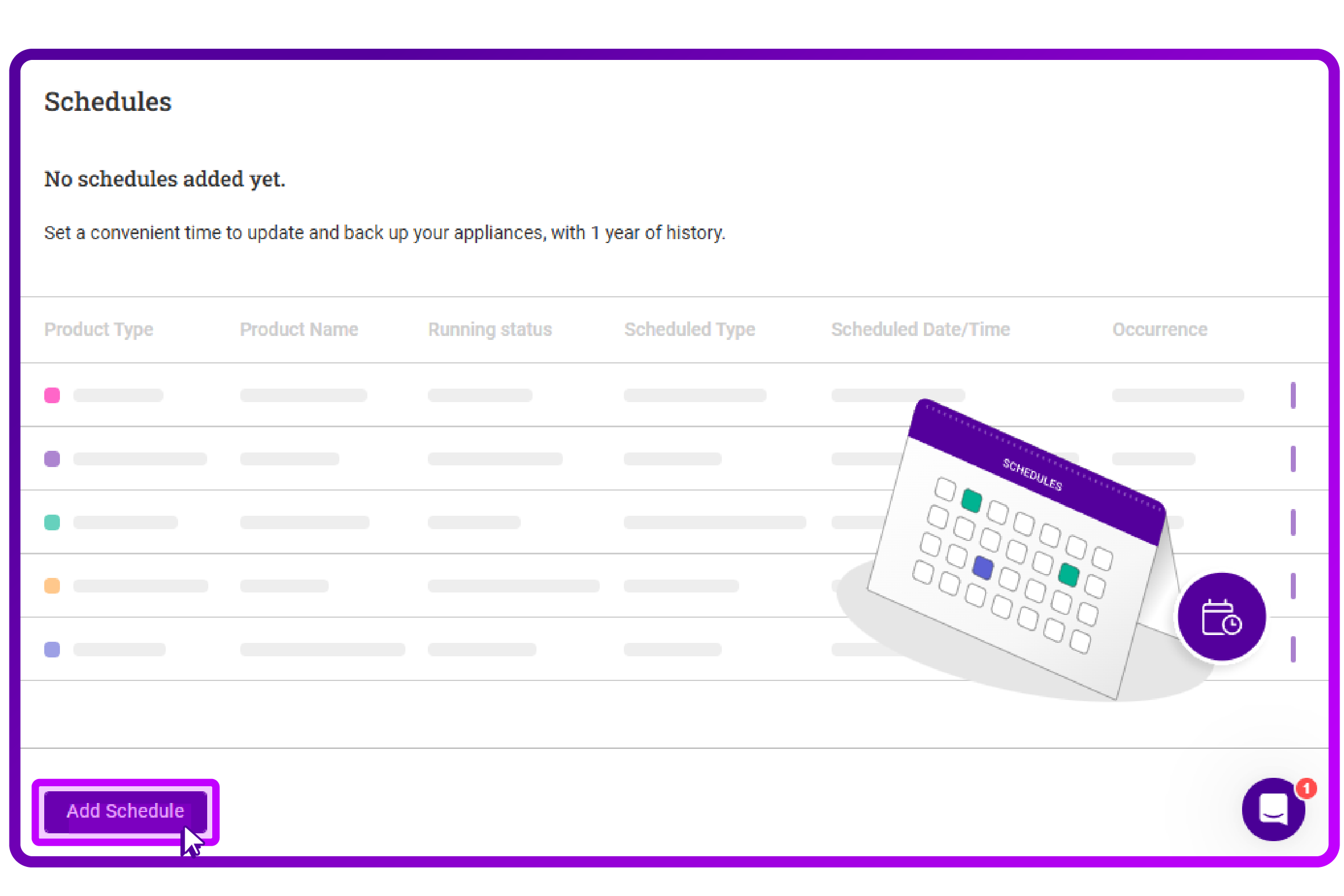 Pressing it brings you to the schedule screen, where I click on 'Add Schedule':