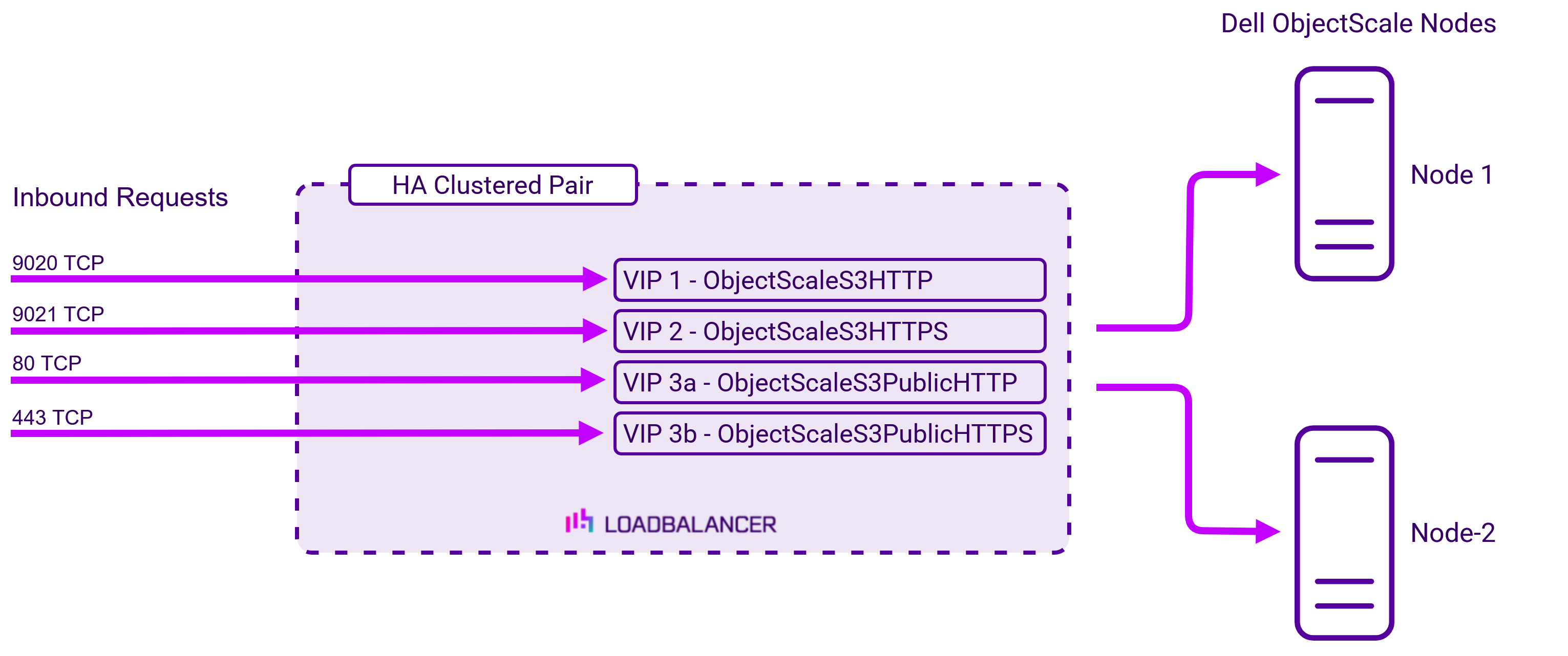 Load balancing for Dell ObjectScale is highly recommended by Dell to ensure the system handles high-performance S3 and Atmos workflows efficiently. By distributing traffic across multiple service nodes, the workflow transitions from a single-point-of-entry to a distributed, resilient architecture, offering the following benefits: