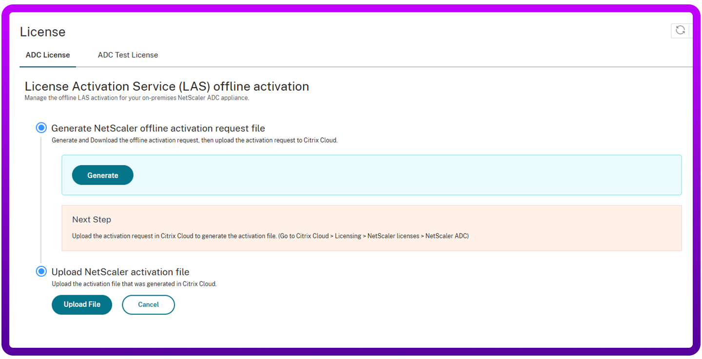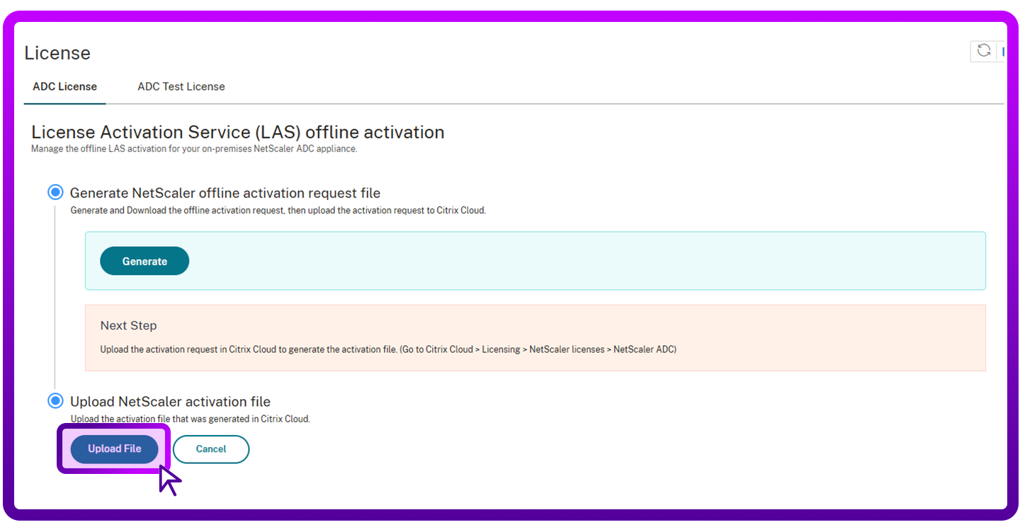 - Download the newly generated “activation blob” file and upload it to your NetScaler:
